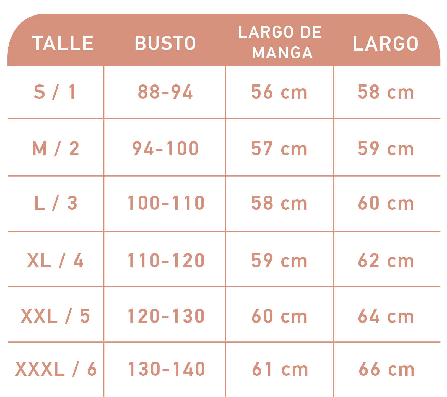 Las medidas de la modelo talle L son: busto 100 cm y cintura 81 cm