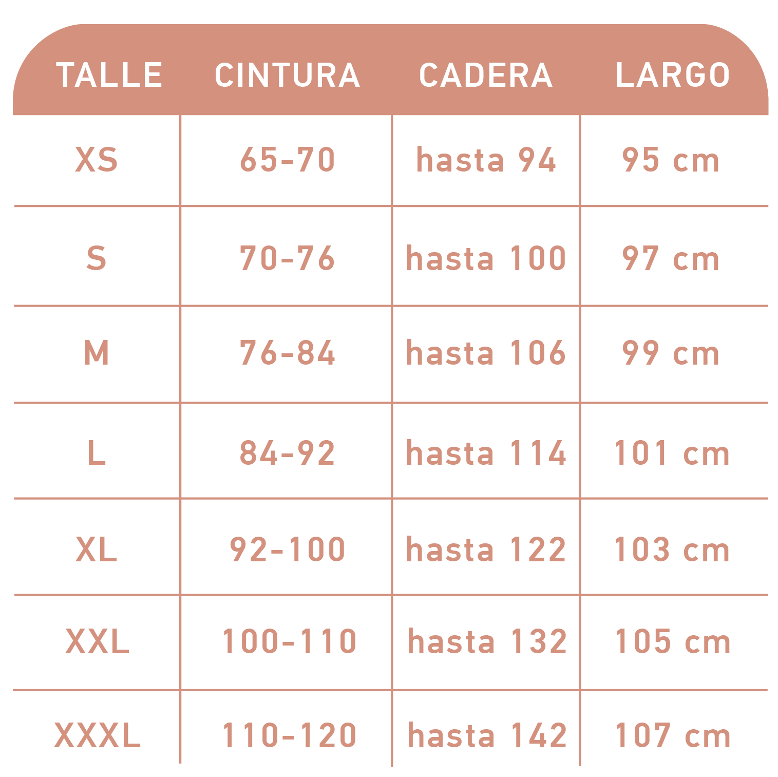 La tela es elastizada, por ello tuvimos en cuenta un rango de cuánto estira para la medida cintura y cadera, pero si tenés alguna consulta no dudes en comunicarte con nosotras para que te asesoremos con los talles :)