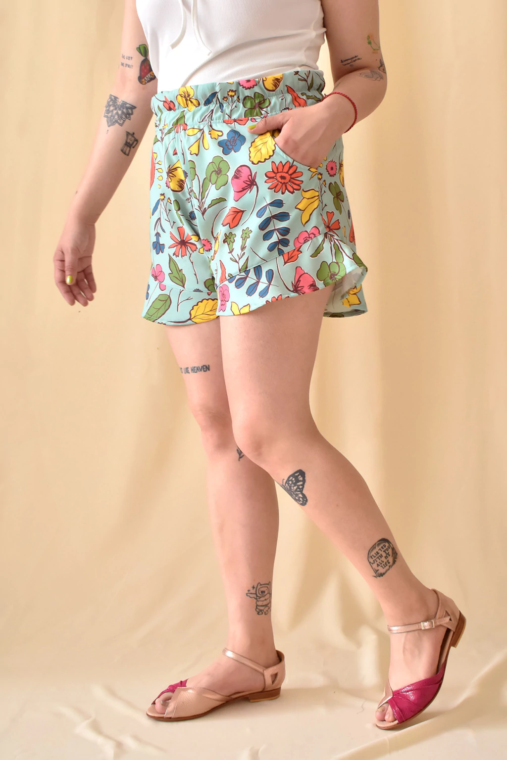 Short de tiro medio con elástico en la cintura y con volados que le dan terminación a la prenda. Lleva dos bolsillos en el frente.