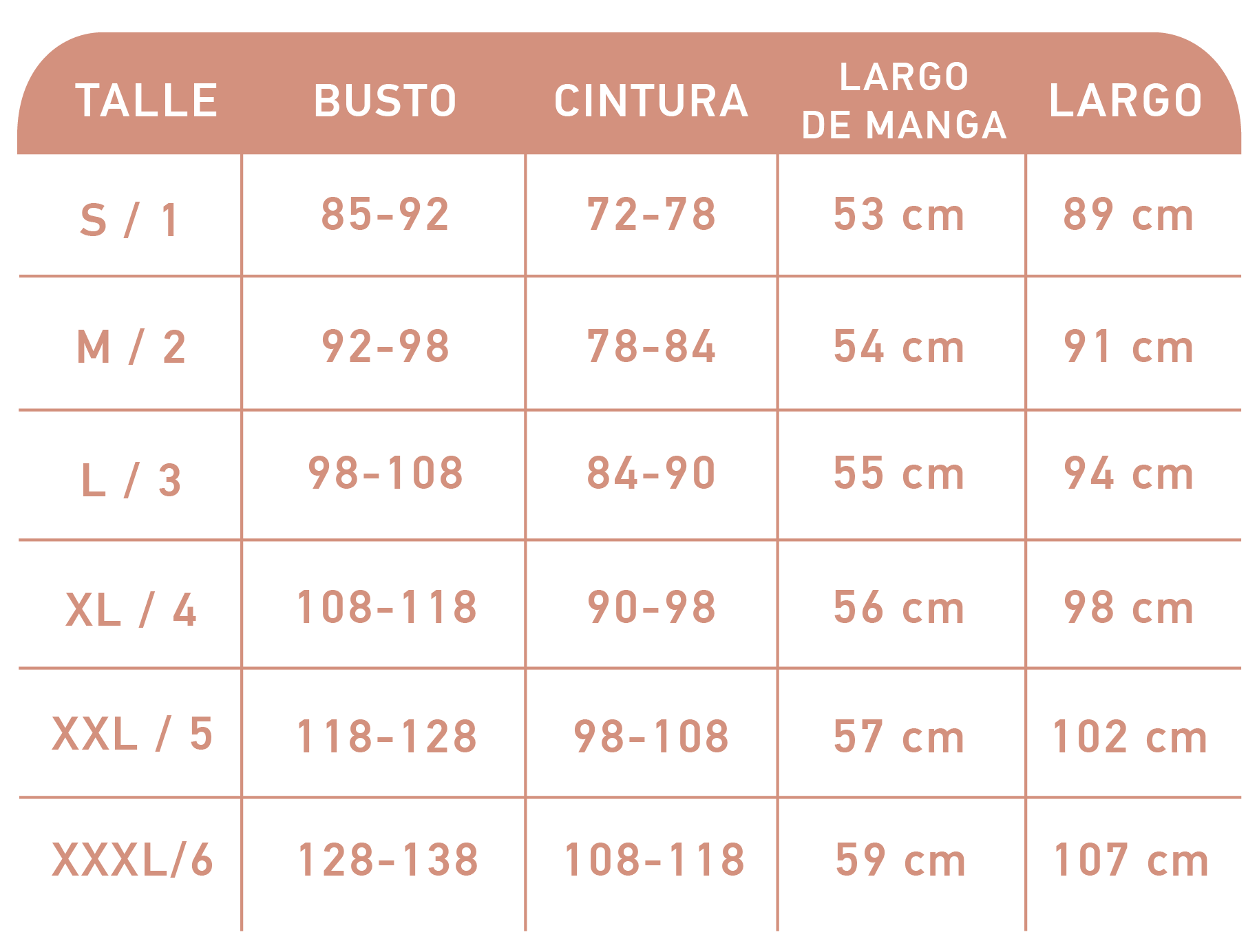 (*) Esta tabla está hecha especialmente para este producto.
